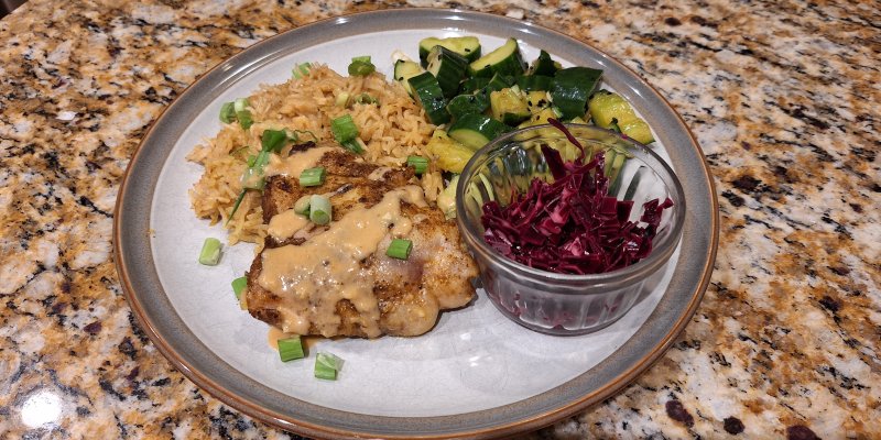 The photo doesn't have the cucumber salad, but trust me it's a great compliment to the chicken and rice
